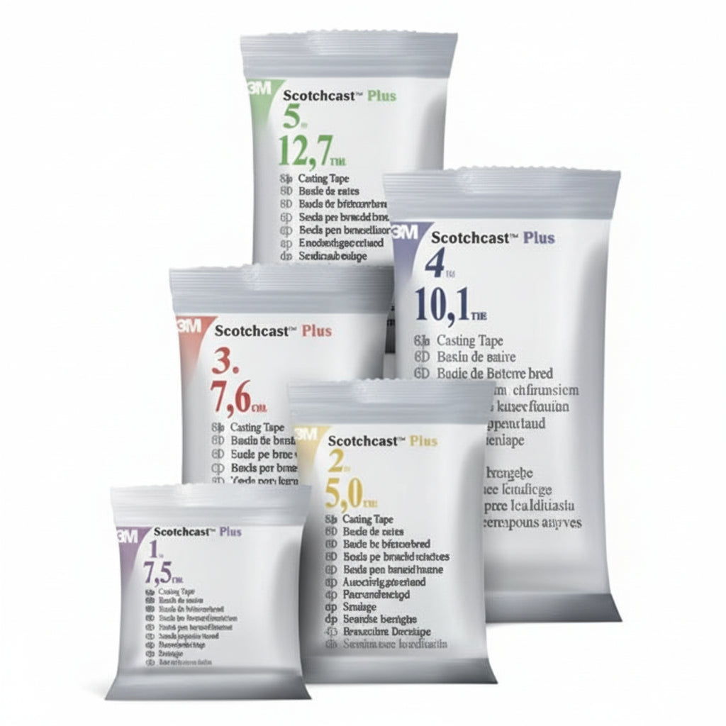 Bande de résine synthétique imprégnée, à base de fibre de verre. Durcit après immersion dans l'eau pour créer une attelle ou un plâtre léger, rigide et très résistant.